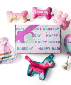 Happy Barkday Birthday Girl Box Dog Toy Bundle. 6-Piece Set (Pink)