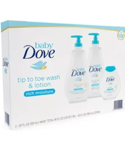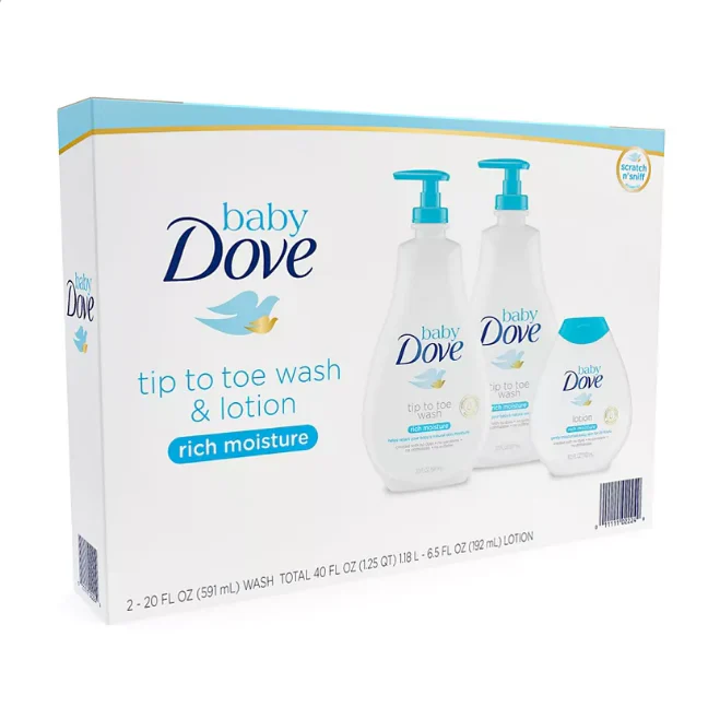 Ophthalmologist-. dermatologist-. and pediatrician-tested with a tear-free and hypoallergenic formula. this bath wash and shampoo is just the thing to make your baby��s bath time special. The rich. creamy lather creates plenty of bubbles. while helping leave your baby��s delicate skin clean. moisturized. and soft. more effectively than ordinary baby soap. This Tip to Toe Wash and Shampoo 2 x 20 oz pack is sold with and additional 6.5-oz. Baby Dove Sensitive Moisture Baby Lotion. Look for the fragrance-free Baby Dove Sensitive Moisture Tip to Toe Wash and Shampoo. The best baby lotion for babies should give the gentle. nourishing care their delicate developing skin needs.