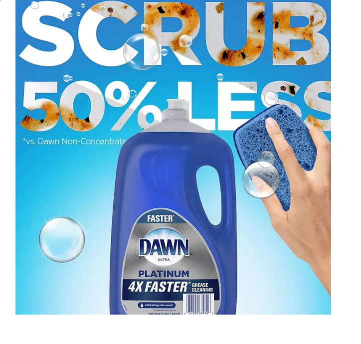 Your toughest. dirtiest everyday messes don��t stand a chance against the grease-fighting formula of Dawn Platinum Dishwashing Liquid Dish Soap. Refreshing Rain (90 fl. oz.). With 4X more grease cleaning power per drop.* Dawn Platinum��s forumula is strong enough to power through everything from the greasiest and grimiest messes to even those baked-on. burnt-on. dried-on foods. This includes messes 48-hours old. And the power of Dawn Platinum liquid dish soap means less scrubbing and no more soaking.