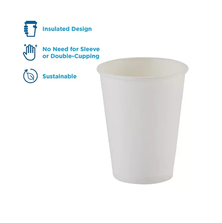 The patented paper process creates a specially insulated cup and eliminates need for costly double-cupping. Cup design provides comfortable. secure feel and non-slip hold. Contains no polystyrene foam. Convenient for both hot and cold beverage service.The Dixie? PerfecTouch? Insulated Paper Hot Cup is available in multiple pack (500 count to 1.000 count). cup sizes (12 oz. to 20 oz. cups). and color (White).
