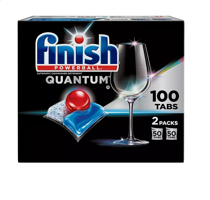The new and improved Finish Quantum Powerball Automatic Dishwasher Detergent Tablets with Activelift technology give you the next level of clean with superior clean and shine. Each tablet features three separate fast-dissolving chambers that deliver three different power actions including: breaks down and lifts the toughest messes. grease-cutting power and a finishing boost of dry and shine. The three separate chamber tablets deliver the cleaning power of an overnight soak. scrubbing away even 24-hour dried-on food. Save your water. as there is no need to pre-soak or pre-rinse! Advanced powder with bleach seeks out and cleans tough stains like tea and coffee. The Finish Quantum Powerball Dishwasher Detergent Tablet’s formula cleans in short cycles and even provides glass protection wash after wash to help maintain their shine. This pack includes two bags of 50 detergent tablets for a value pack size of 100 total tabs.