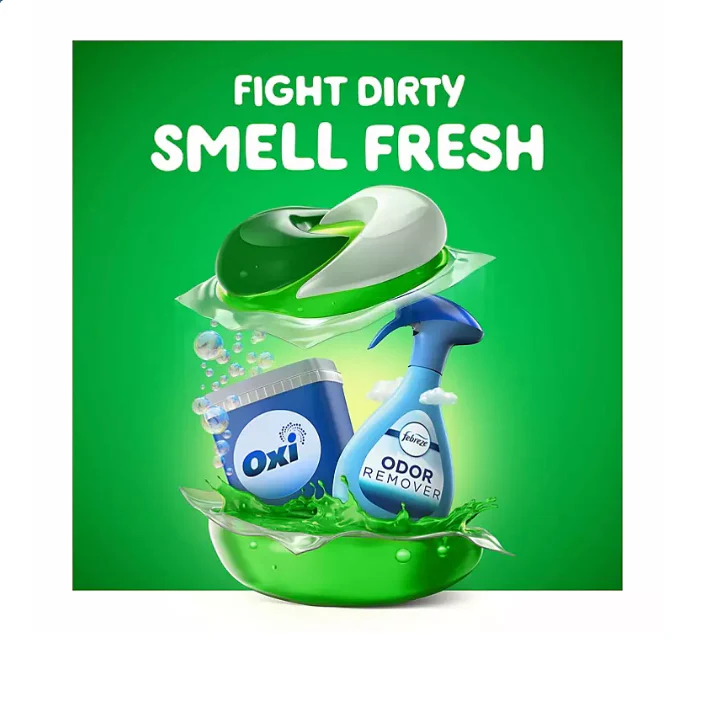 - 3-in-1: Gain detergent. Oxi Boost. and Febreze Freshness