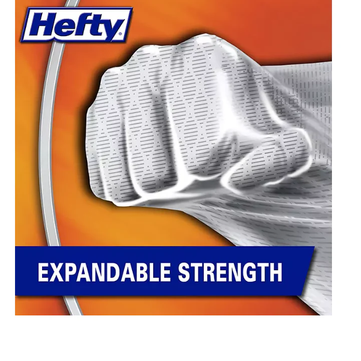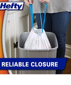 Keep your kitchen clean. fresh and free from the obnoxious odor of trash with Hefty Ultra Strong Tall Kitchen Drawstring Trash Bags. With 6-in-1 protection. this bag provides flex strength. secure-fit closure. odor control. and resists leaks. punctures and rips. That stretchy strength means you don’t have to worry about unexpected bag breakage and inconvenient messes. Ultra-Strong Hefty trash bags are shorter when empty compared to other kitchen bags of same volume. making it easy to store them around the house. This pack contains 150 trash bags and is an ideal choice for those looking to maintain a clean and healthy environment at home and in the kitchen.