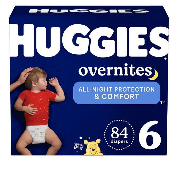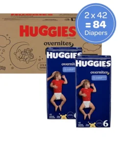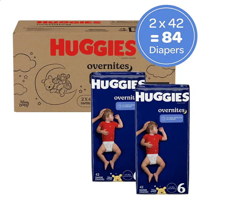 With a contoured shape for trusted leak protection and a pocketed waistband to prevent blowouts. Huggies Overnites baby diapers provides all-night protection and comfort so your baby can have drier nights and better mornings. These disposable diapers also feature Huggies’ SnugFit Waistband with Double Grip Strips for a secure fit. perfect for babies starting to roll and toss during sleep. Plus. a breathable outer cover help keep your baby’s skin dry and comfortable. while Huggies’ wetness indicator lets you know if your little one needs a diaper change.?