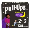 Visit pull-ups.com for expert articles. tips. and potty-training resources. We’ve helped train 60 million Big Kids and counting! Pull-Ups Night-Time Boys’ Training Pants are available in sizes 2T-3T (16-34 lbs.) and 3T-4T (32-40 lbs.). For daytime potty training. try Pull-Ups Learning Designs or Pull-Ups New Leaf! Buy in bulk and save. (*vs. size 3-5 Huggies Little Movers diapers)