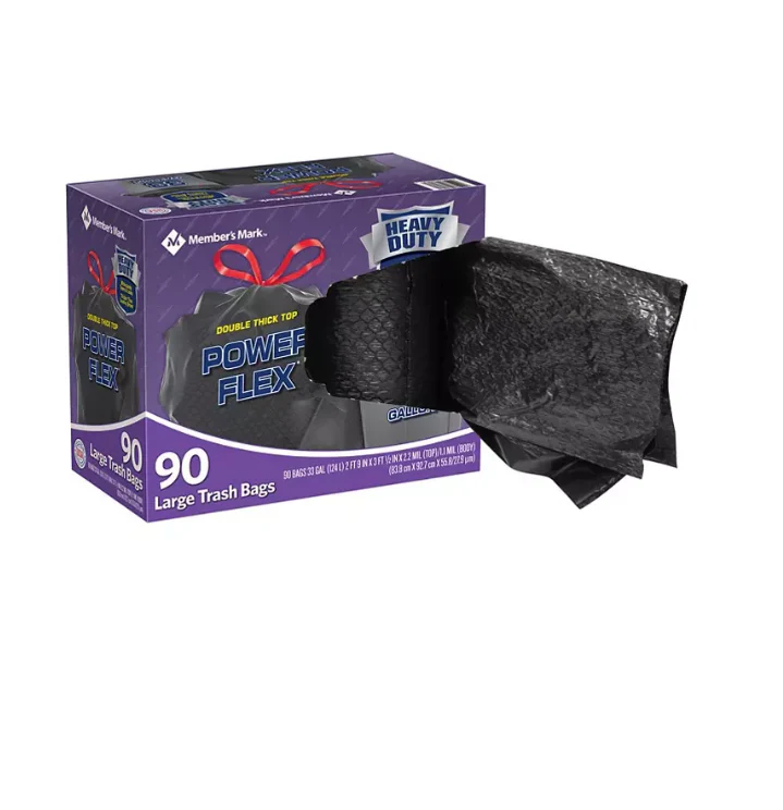 Member’s Mark? 33-Gallon Power-Guard Drawstring Trash Bags are tough enough to handle any household chore. These extra-large trash bags have a drawstring top and are embossed for flexibility. making them ideal for a range of heavy-duty tasks.