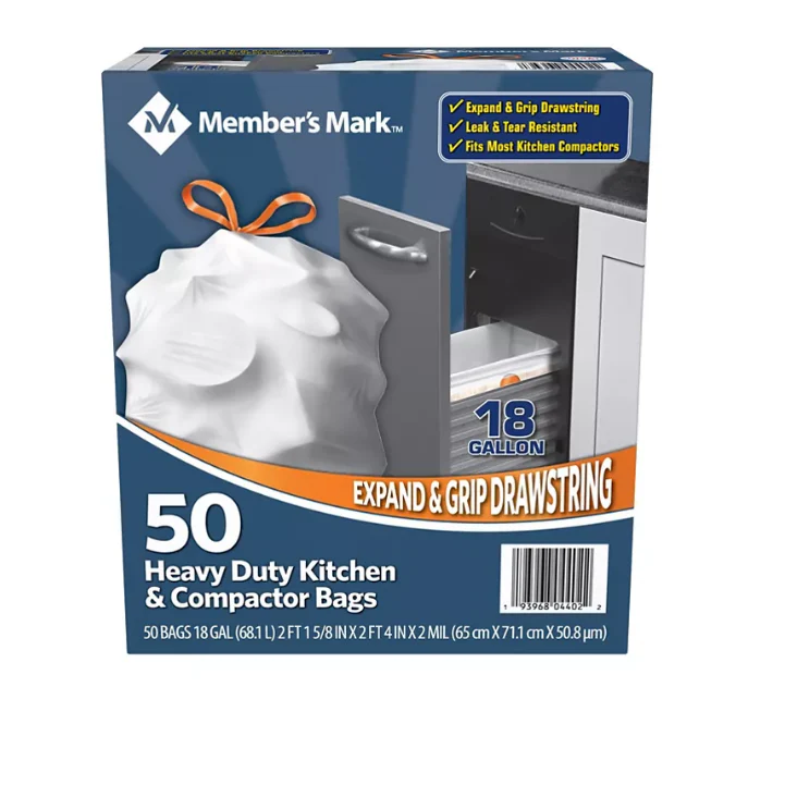 Member’s Mark Drawstring Trash Compactor Bags will help to ensure that all your trash stays in place as you remove your old bag and carry it outside. With 50 bags included. you’ll easily stay stocked for all your compactor or heavy-duty trash needs.?