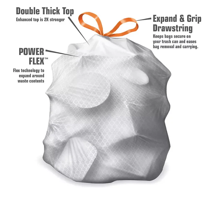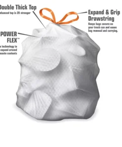 - Tall kitchen trash bags with simple fit drawstring bags and superior odor control