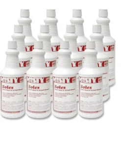 A highly concentrated 23% hydrochloric acid toilet bowl and urinal cleaner that cleans. deodorizes and descales. Designed to recondition badly soiled toilet bowls and urinals that are not routinely cleaned. Not for use on porcelain. chrome or other polished metal surfaces. Ideal for industrial and commercial janitorial cleaning applications. Applicable Material: Ceramics; Enamel; Metal; Application: Bowl Cleaner; Capacity (Volume): 32 oz; Chemical Compound: Hydrochloric Acid; Dirt Types: Bacteria; Grime; Mildew; Mineral Scale; Mold; Organic Matter; Rust; Soil; Stains; Packing Type: Bottle; Physical Form: Liquid; Quantity: 12 per carton; Scent: Wintergreen Post-Consumer Recycled Content Percent: 0%. Pre-Consumer Recycled Content Percent: 0%.