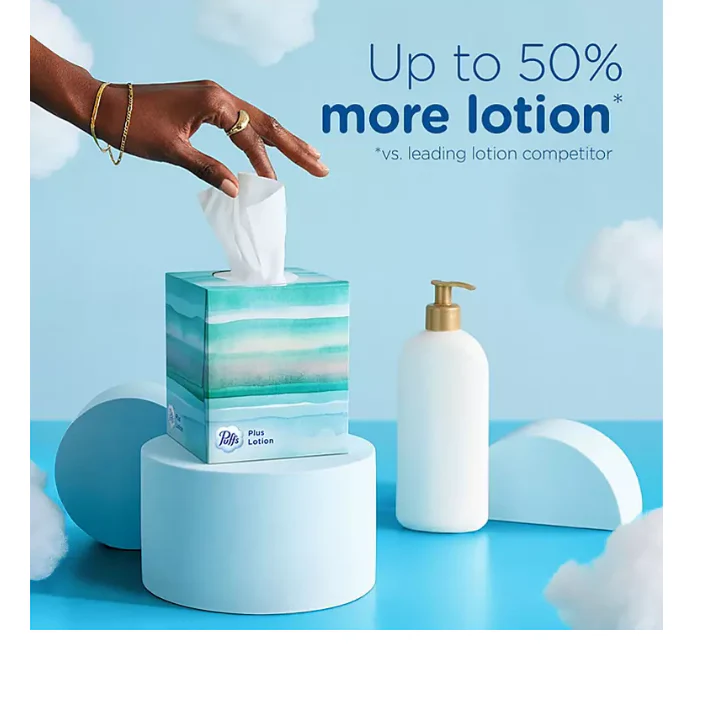- Pack includes 12 Mega Cubes (72 tissues per cube) of Puffs Plus Lotion Facial Tissues