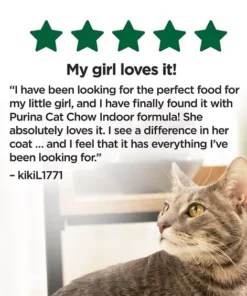 Give your indoor cat the specialized nutrition she needs to thrive with Purina Cat Chow Indoor Hairball + Healthy Weight Adult Dry Cat Food. We expertly prepare this indoor cat food with your kitty��s decreased activity levels in mind. The Indoor + Hairball + Healthy Weight cat food recipe helps promote your feline friend’s healthy weight. Plus. a natural fiber blend helps create a hairball control cat food formula you can both feel good about at mealtime. She’s sure to delight in the delicious taste and crunchy texture of this dry cat food for a healthy weight. which is made with REAL AND DELICIOUS farm-raised chicken and no artificial flavors. To help her look and feel exceptional. we formulate the dry cat food with 100 percent complete and balanced nutrition for adult cats and include all 25 essential vitamins and minerals she needs to thrive in her life with you. With Purina Cat Chow Indoor dry cat food. you get the satisfaction that comes from caring for her nutritional needs. She gets a high-fiber cat food recipe with high-quality. responsibly sourced ingredients and full of the flavor she loves and the nutrition she needs to live her best life by your side.