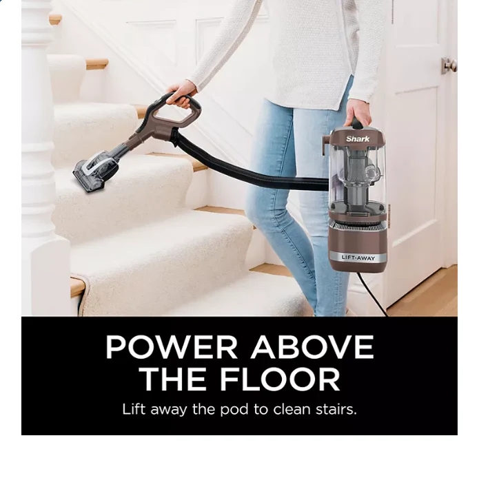 - Engineered to pick up more hair with no hair wrap (vs. Shark bristle nozzles). Lift away the detachable pod with the easy-to-use pod-release pedal to clean stairs. furniture. and everywhere else in your home