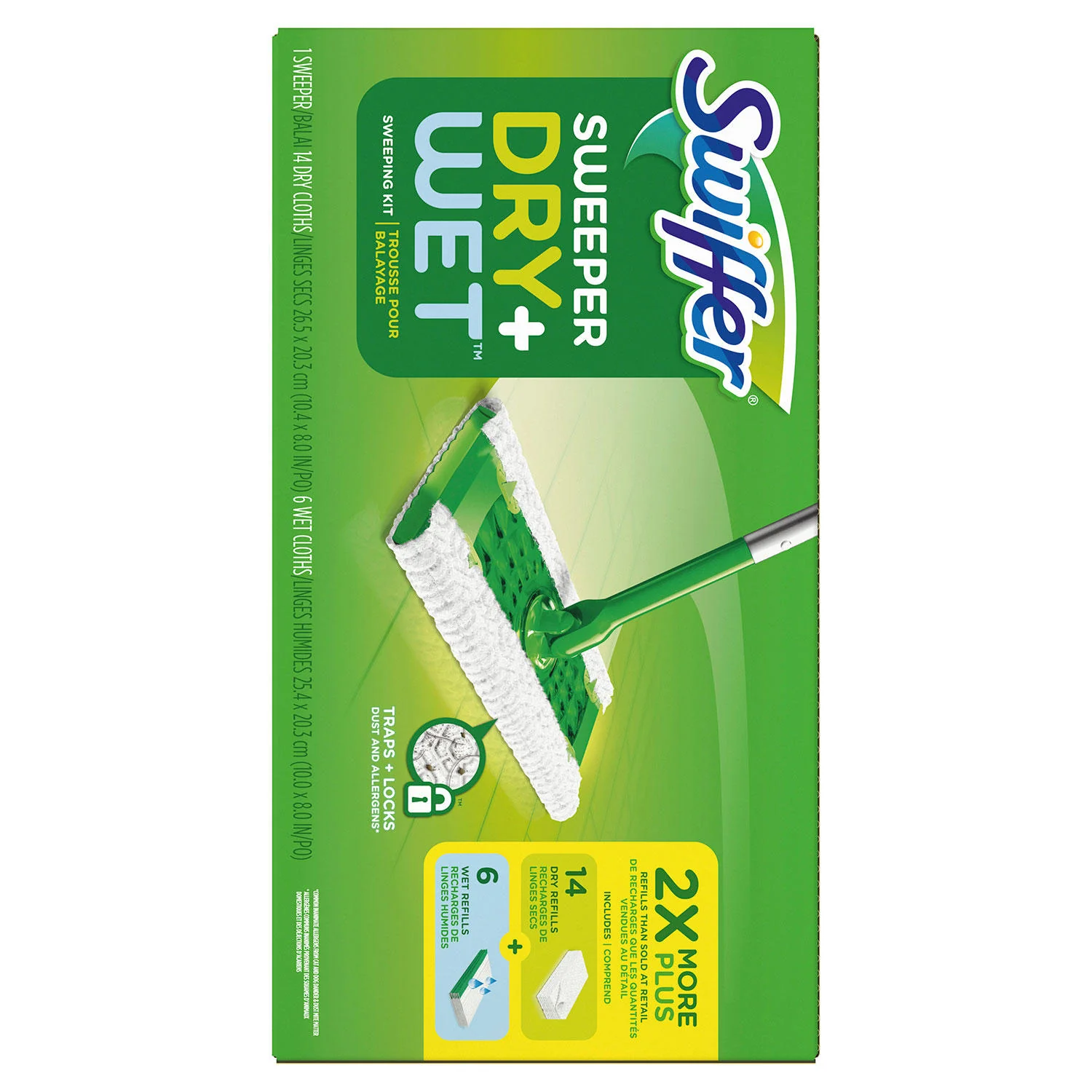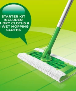- Swiffer Sweeper starter kit includes a Sweeper. 14 dry sweeping cloths and 6 wet mopping cloths